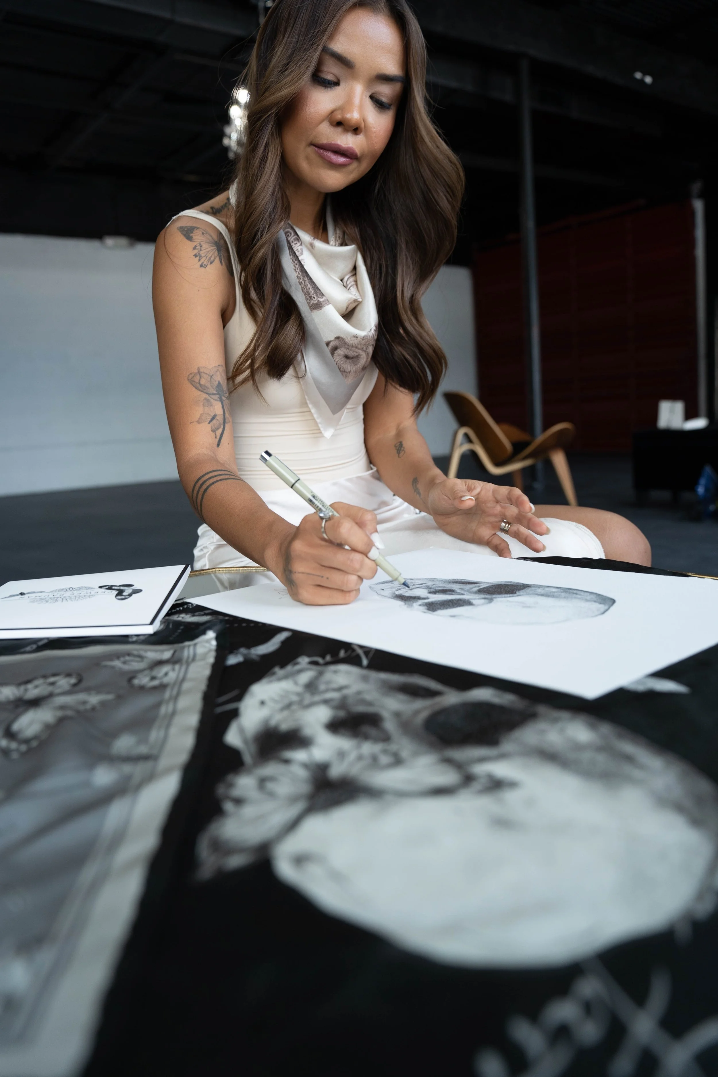 All scarves are printed on 100% silk, hand-hemmed and sized at 80 x 80 cm